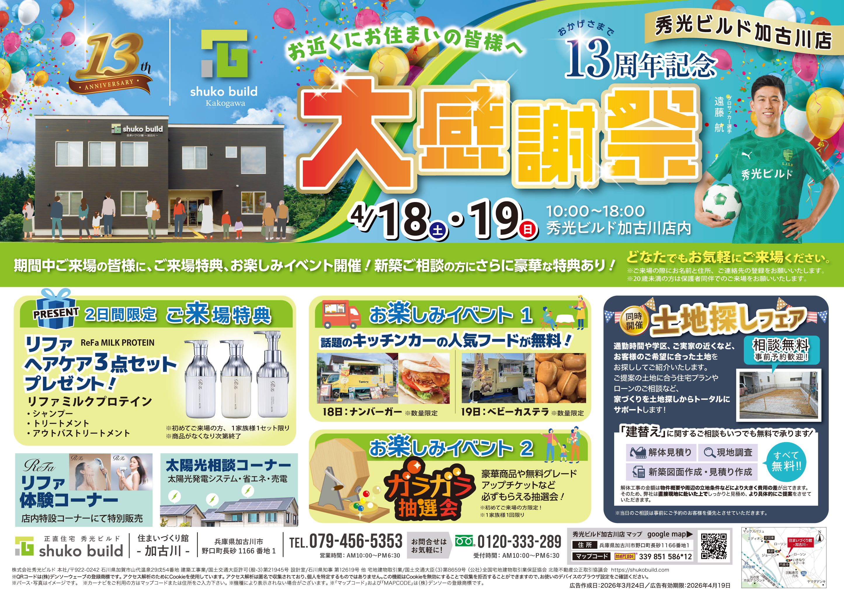 秀光ビルド加古川店 13周年記念 大感謝祭 開催!