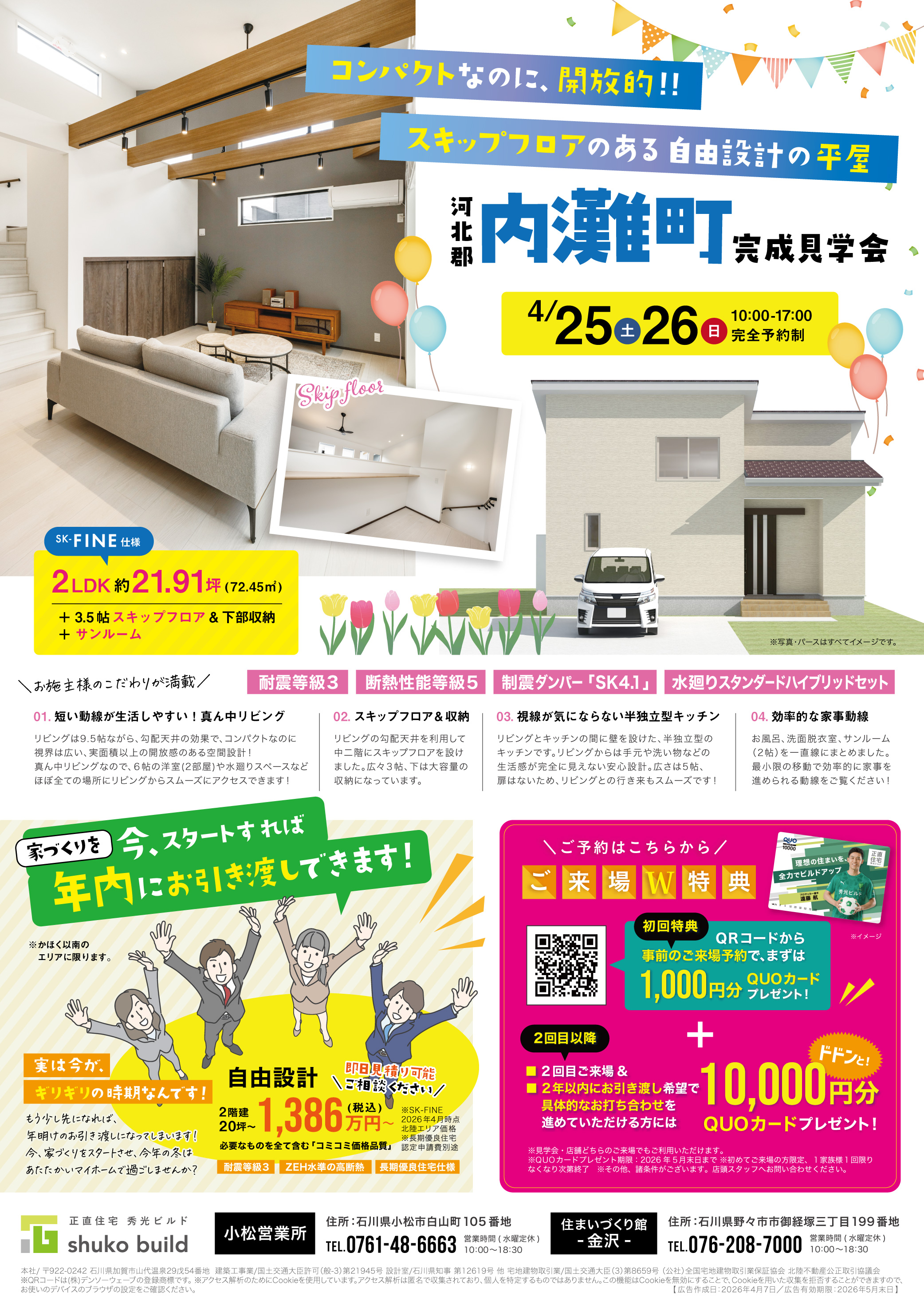 お問い合わせ先:秀光ビルド小松営業所 0761-48-6663