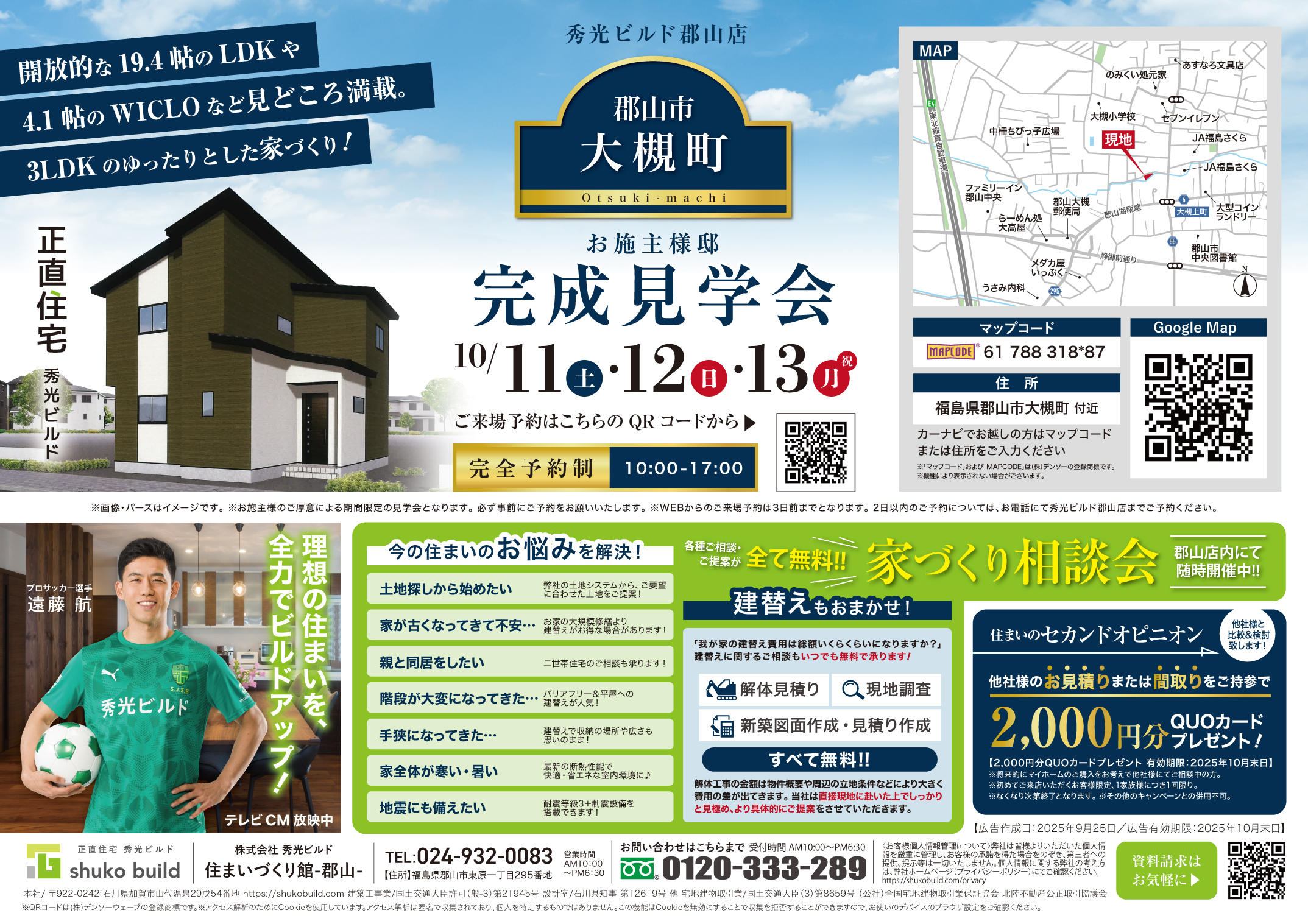 お問い合わせ先:秀光ビルド郡山店 024-932-0083