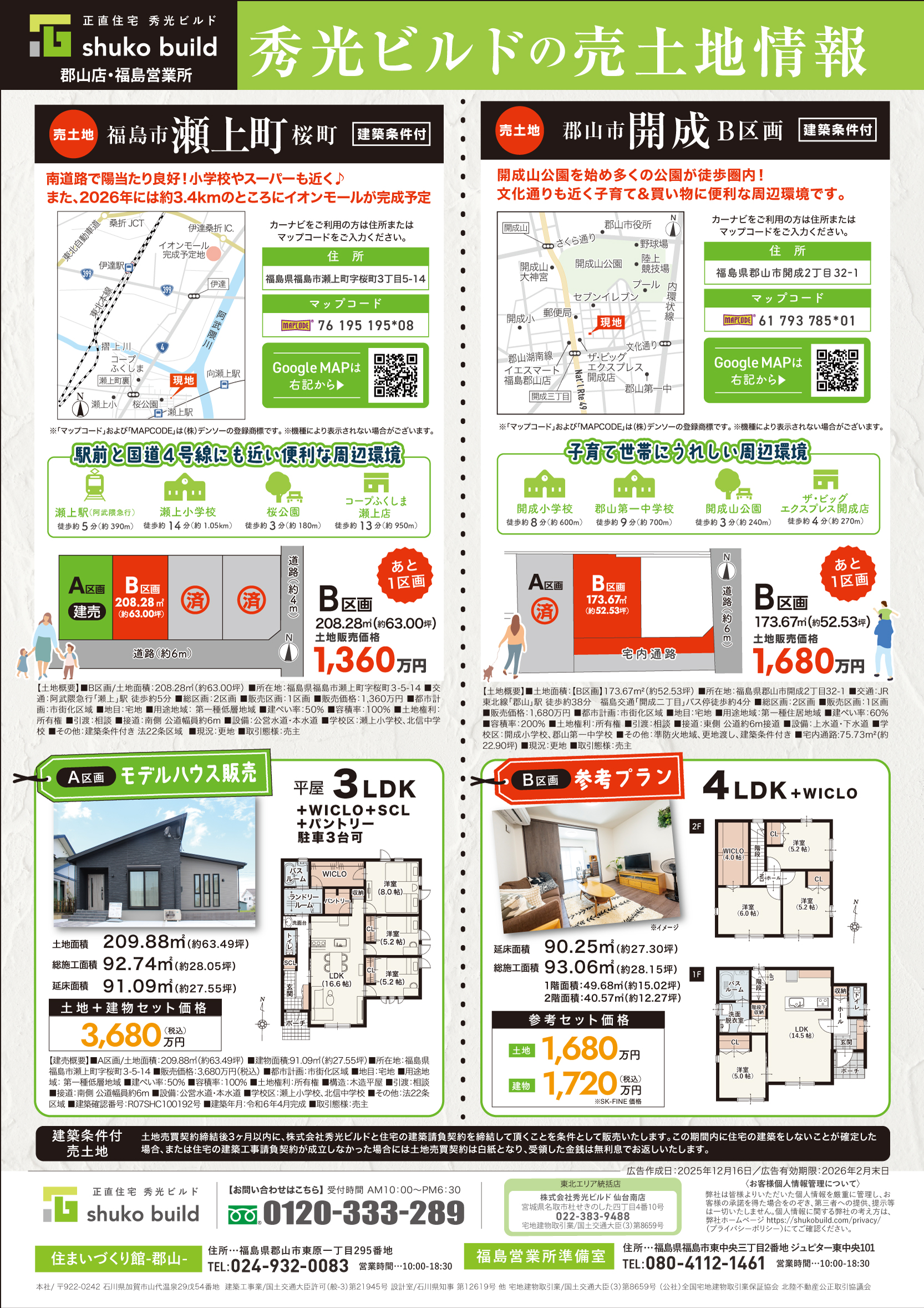 お問い合わせ先:秀光ビルド郡山店 024-932-0083