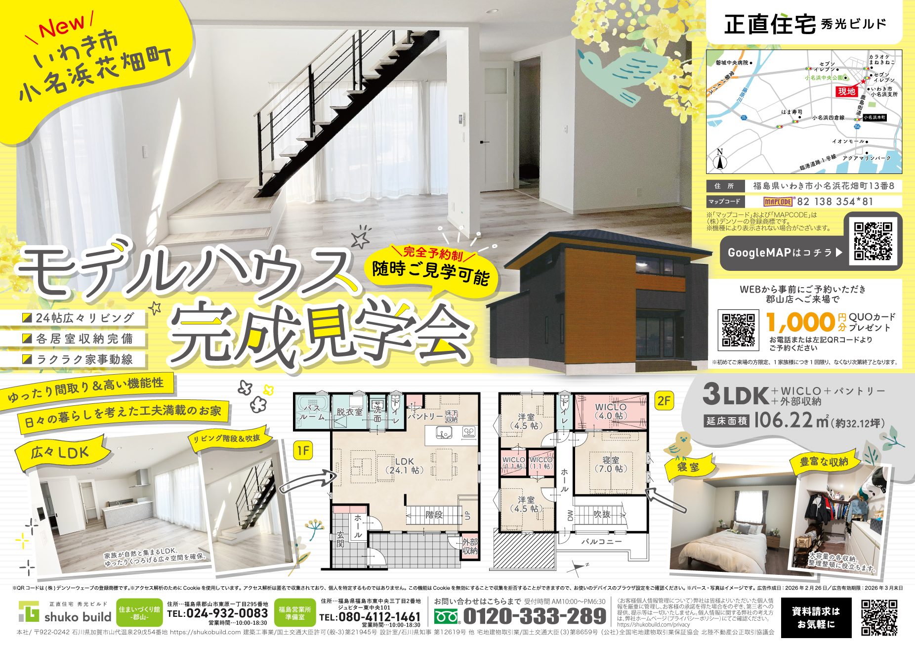 秀光ビルド郡山店&福島営業所準備室 いわき市小名浜花畑町 モデルハウス完成見学会 随時ご見学可能!
