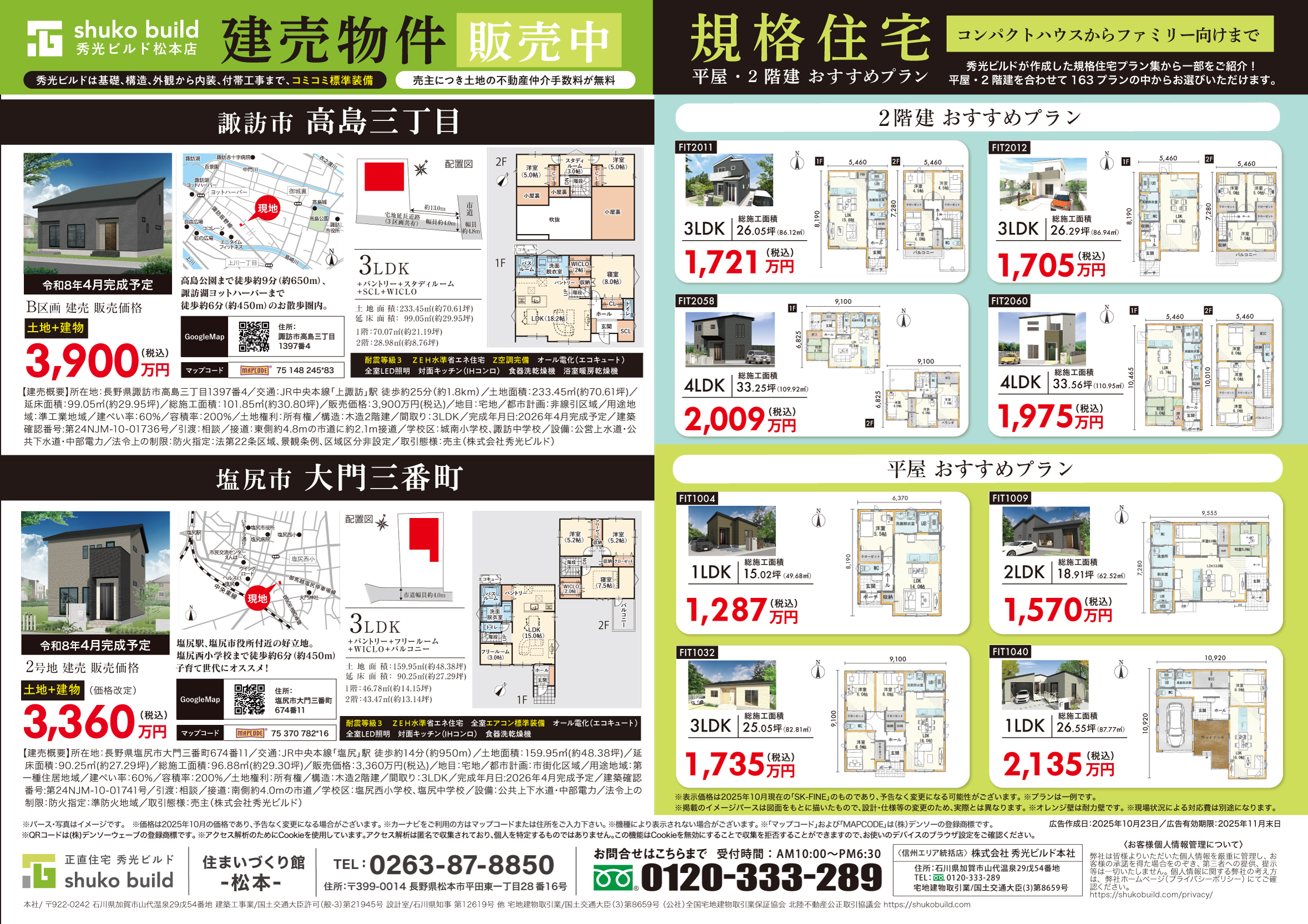 お問い合わせ先:秀光ビルド松本店 0263-87-8850