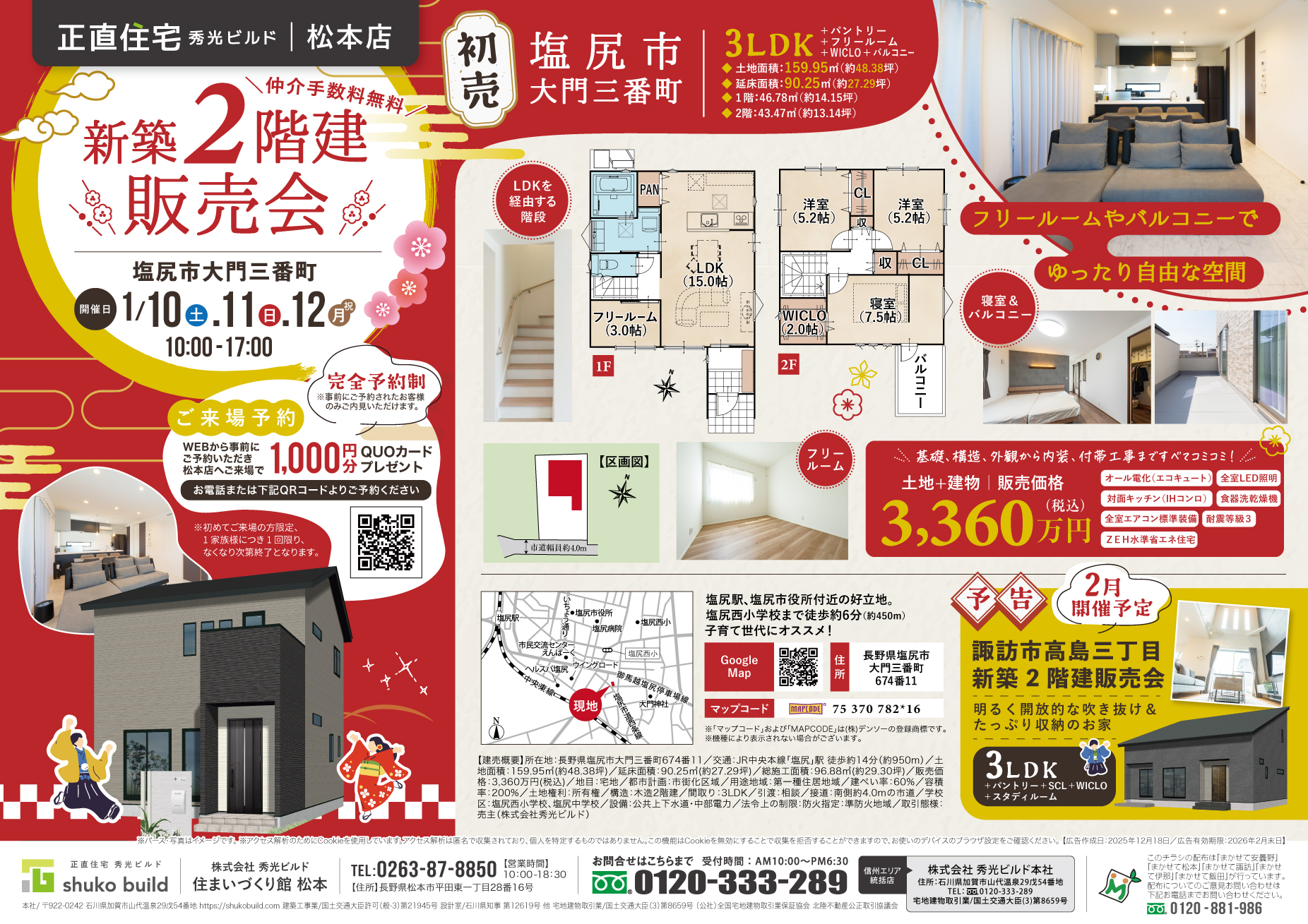 秀光ビルド松本店 塩尻市大門三番町 新築2階建販売会 開催!