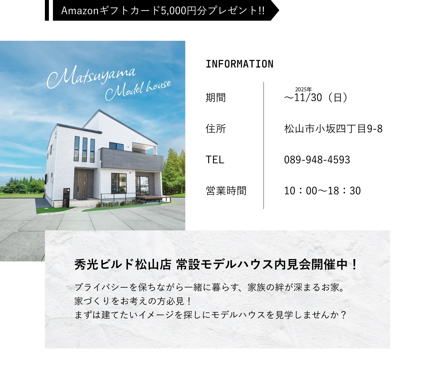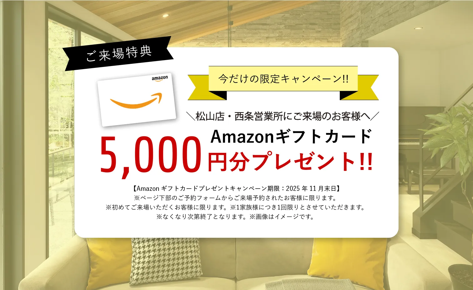 松山・西条エリア限定開催|Amazonギフトカード5,000円分プレゼントキャンペーン(@松山店、西条営業所)