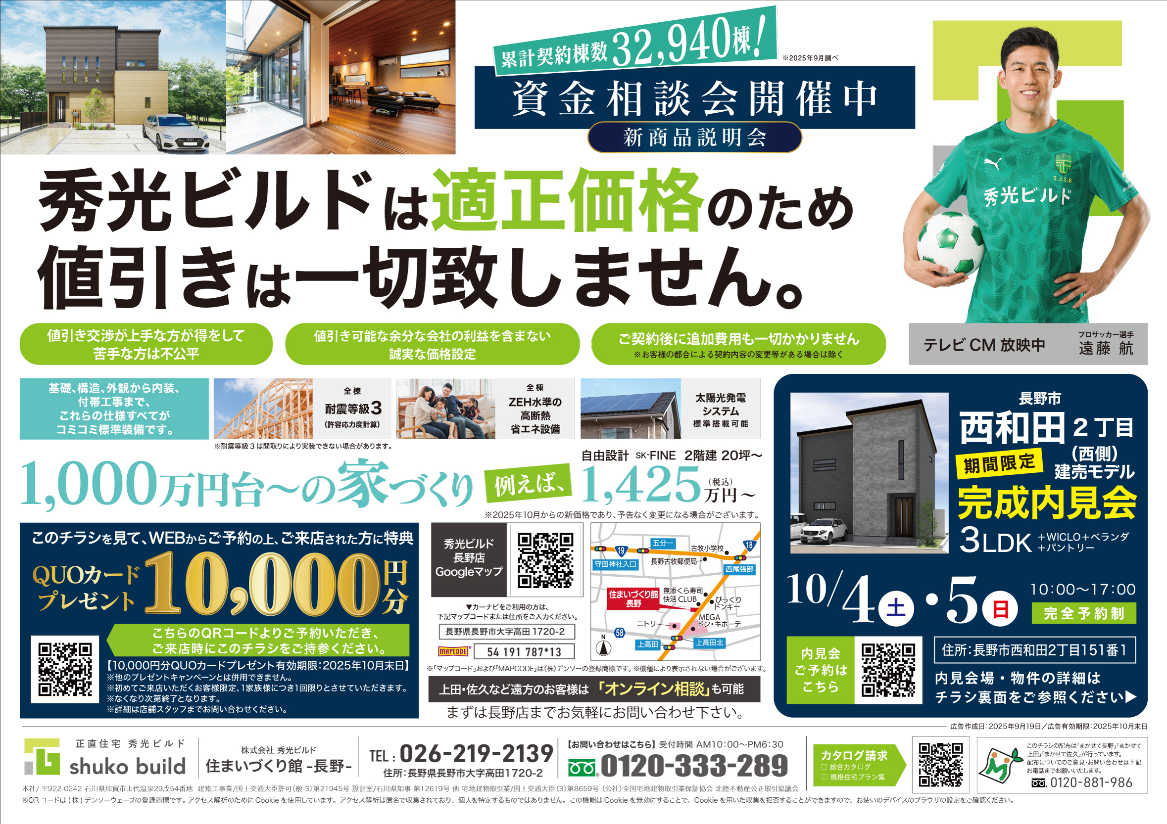 \秀光ビルドは適正価格のため、値引きは一切致しません。/