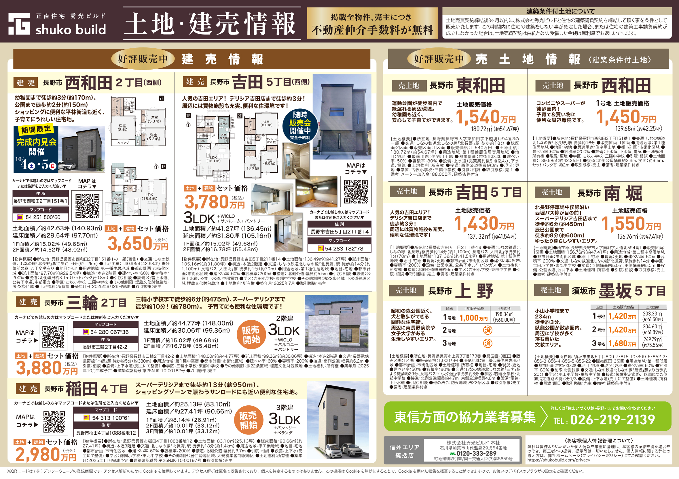 お問い合わせ先:秀光ビルド長野店 026-219-2139