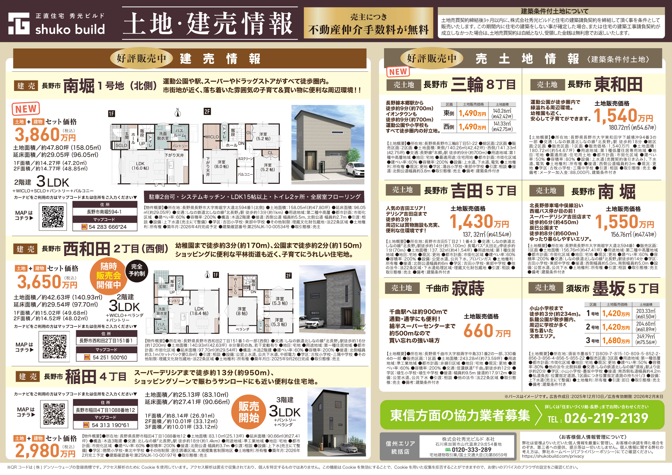お問い合わせ先:秀光ビルド長野店 026-219-2139