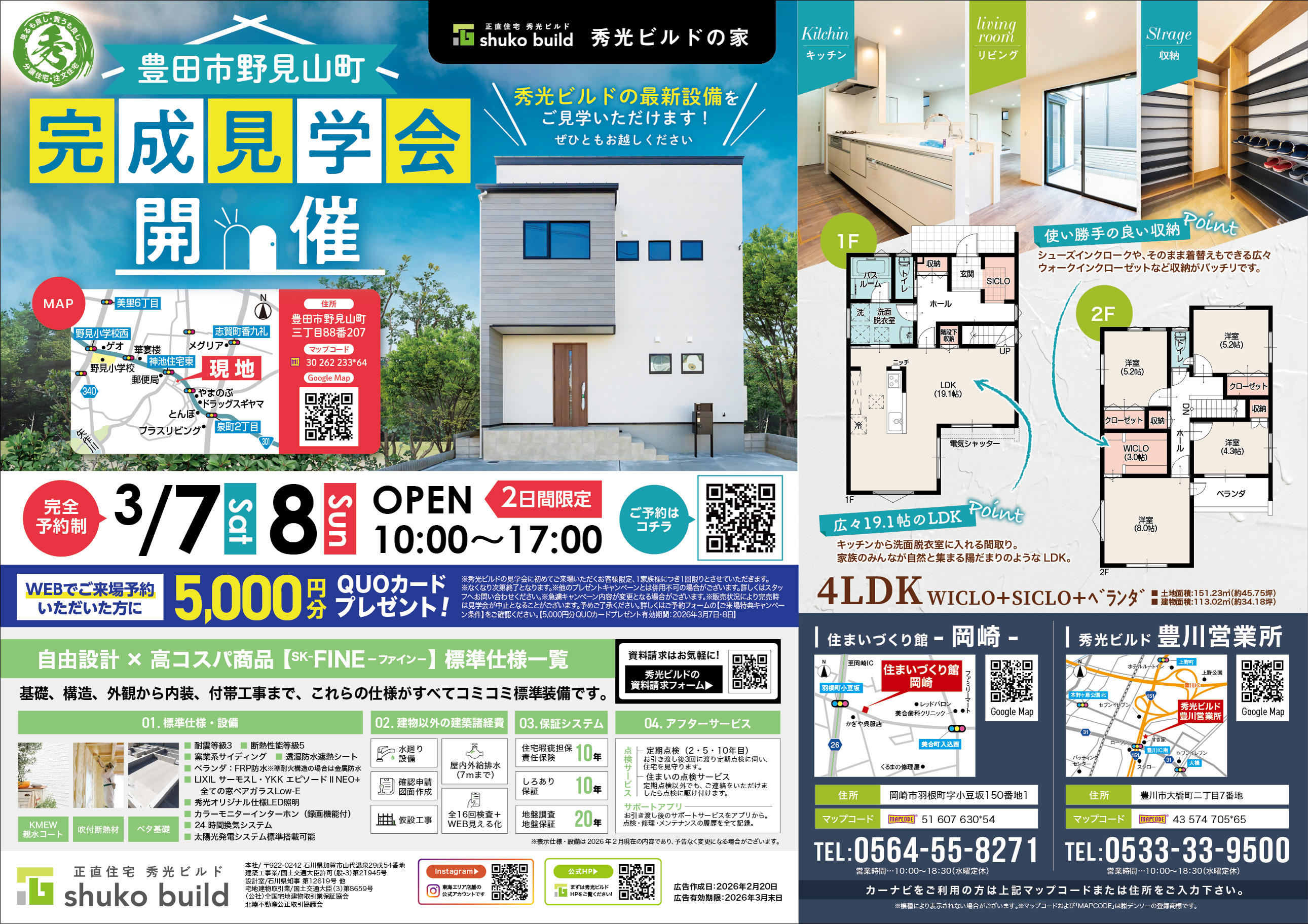 秀光ビルド岡崎店&豊川営業所 豊田市野見山町 完成見学会 開催!