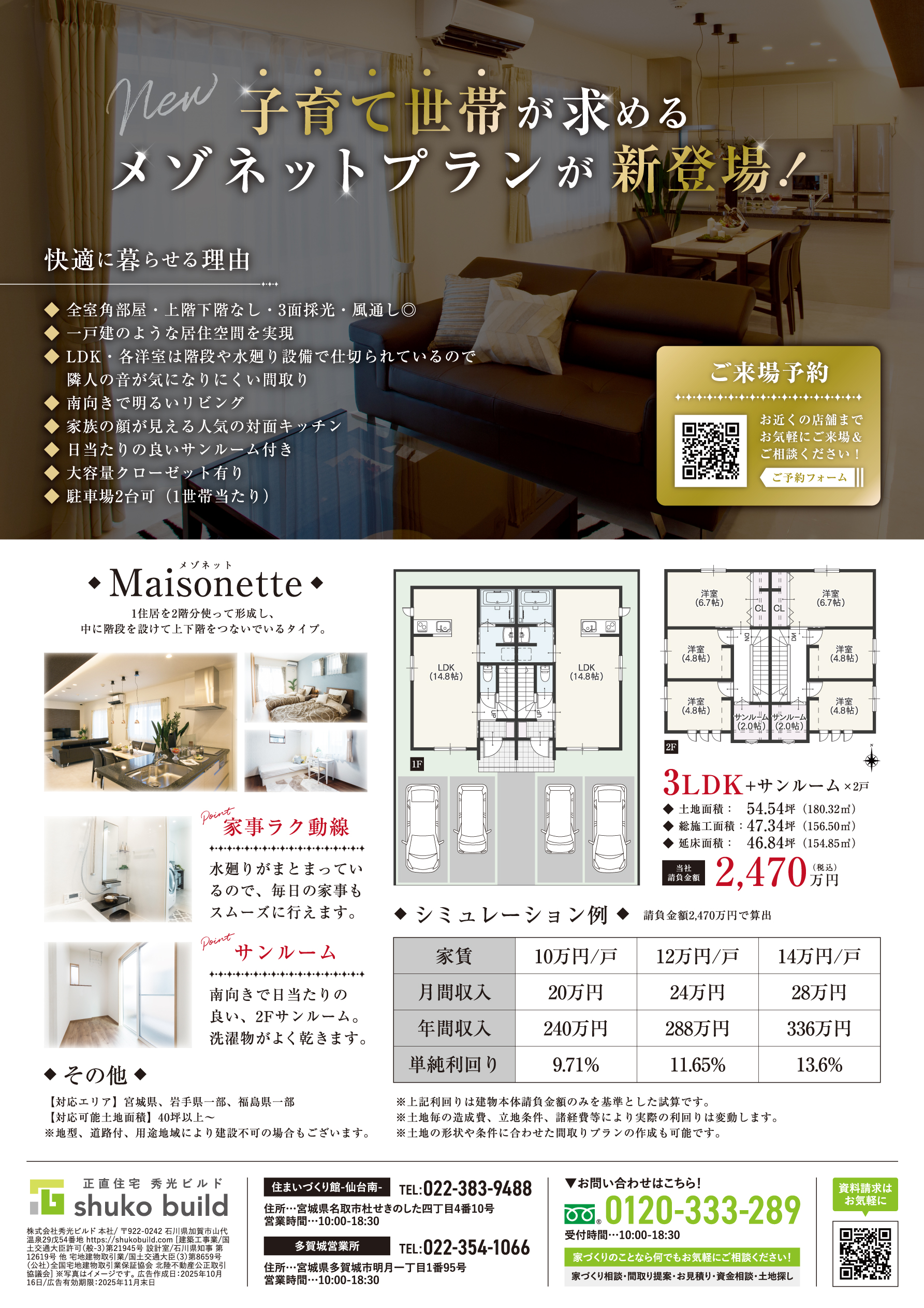 お問い合わせ先:秀光ビルド仙台南店 022-383-9488