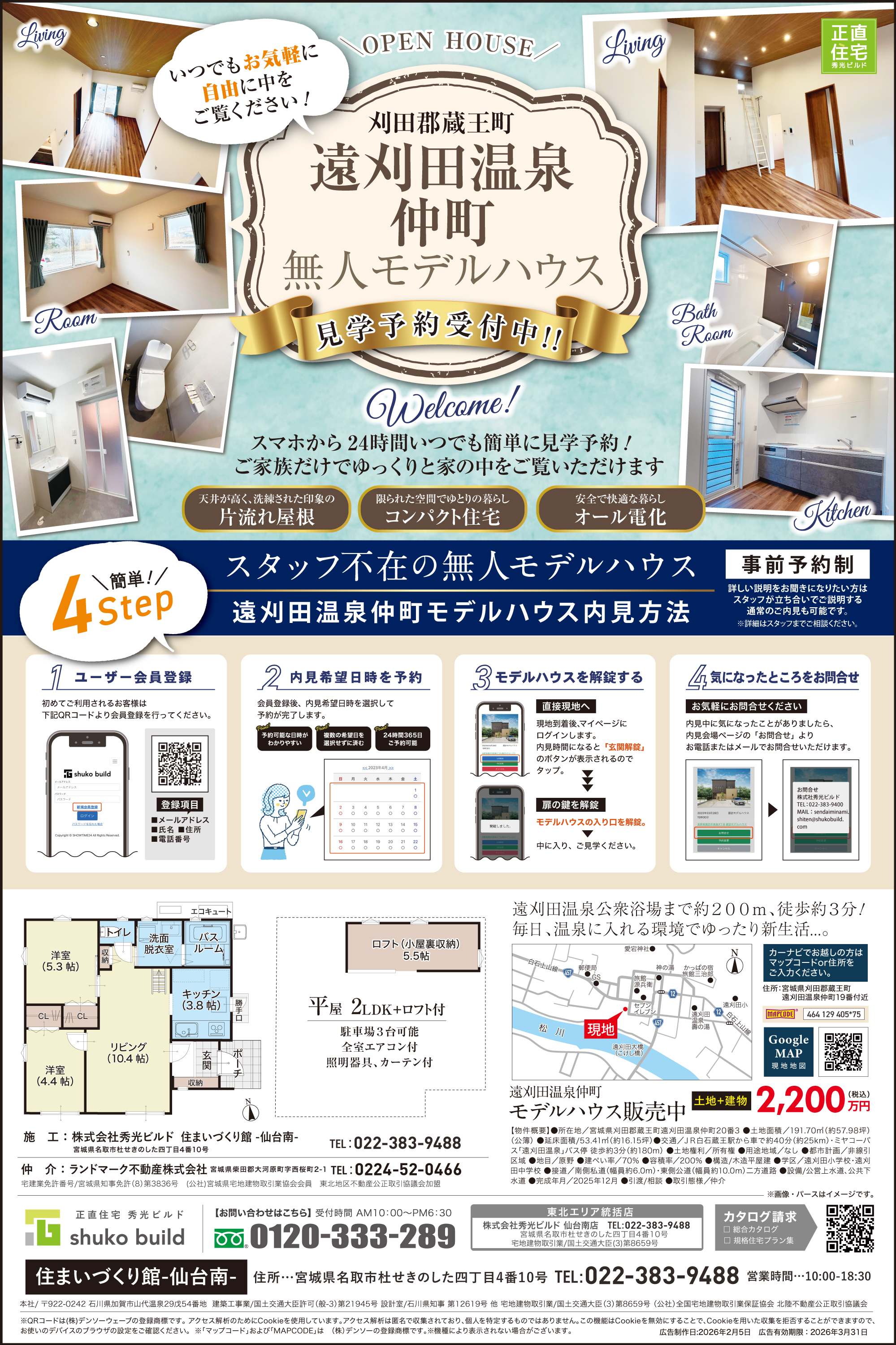 秀光ビルド仙台南店 遠刈田温泉仲町 無人モデルハウス見学予約受付中!