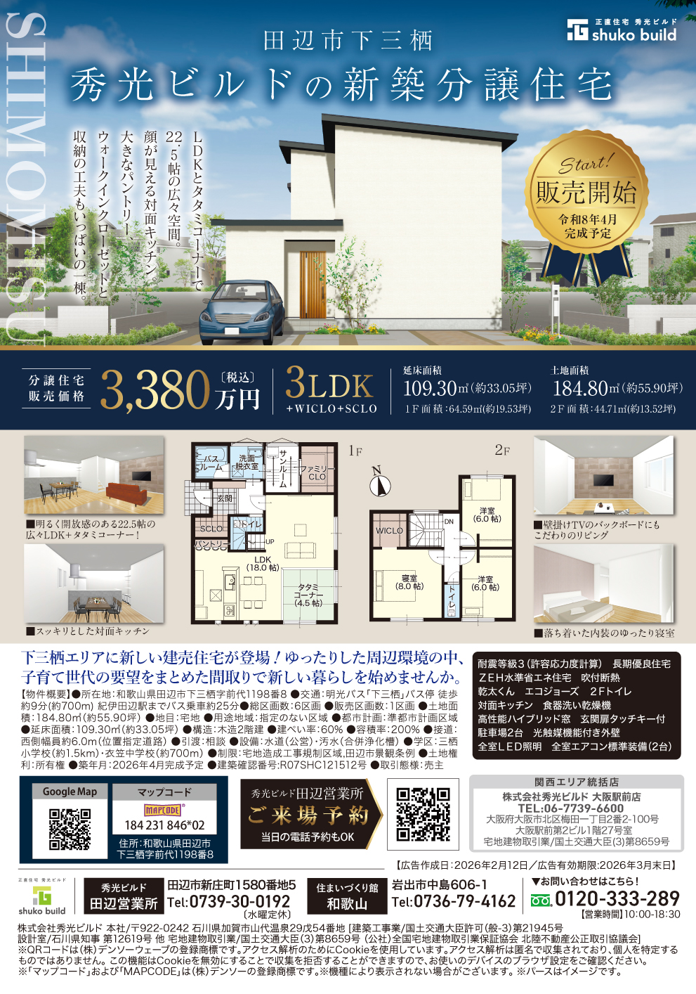 お問い合わせ先:秀光ビルド田辺営業所 0739-30-0192(水曜定休)