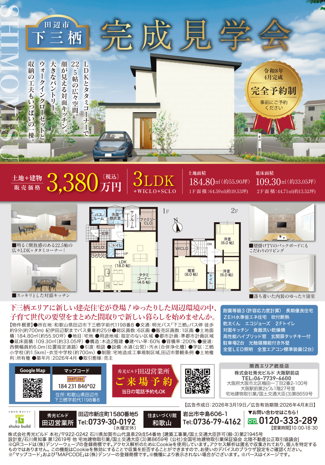 お問い合わせ先:秀光ビルド田辺営業所 0739-30-0192(水曜定休)