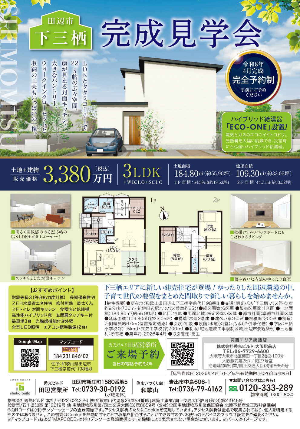 お問い合わせ先:秀光ビルド田辺営業所 0739-30-0192(水曜定休)