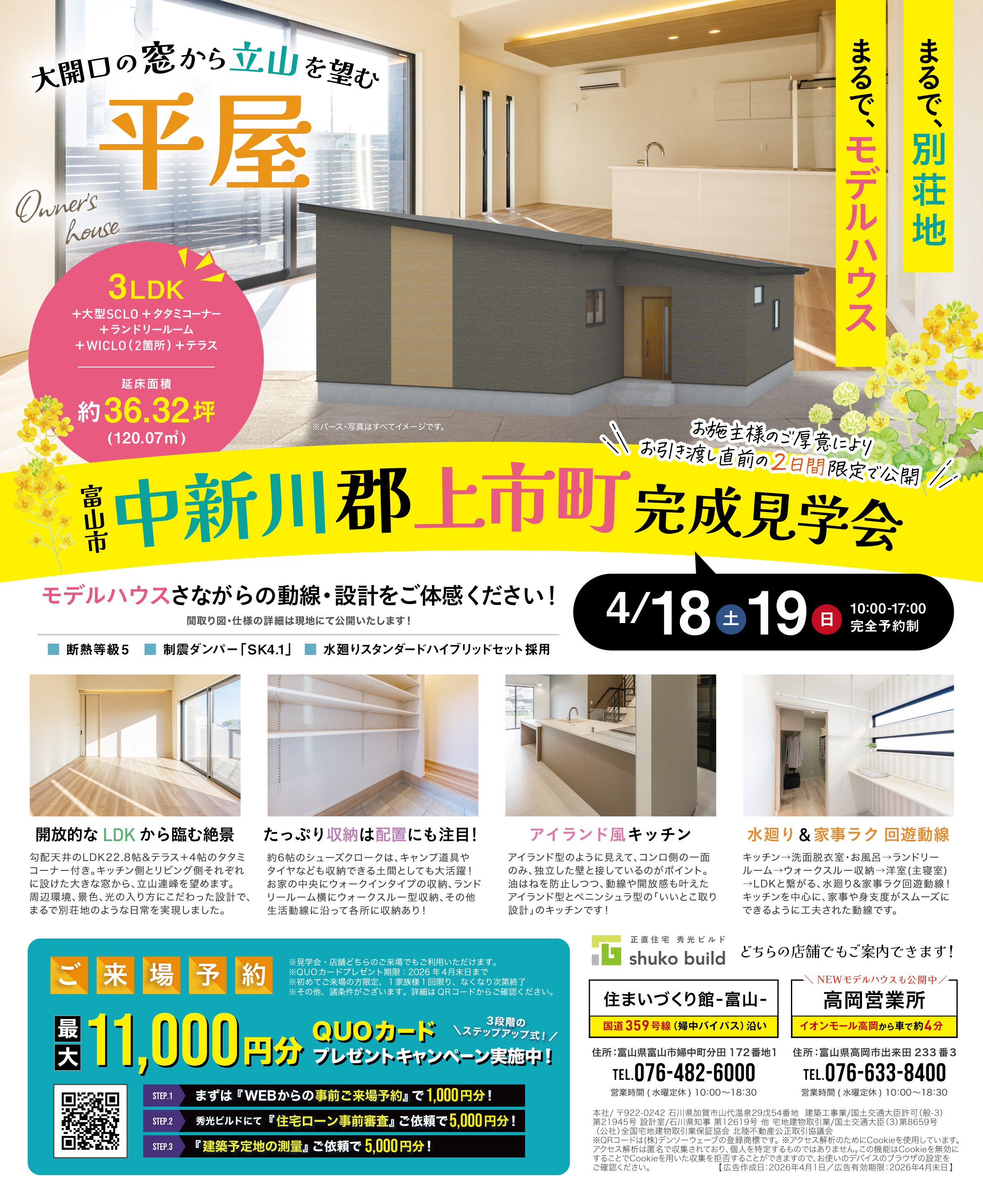 秀光ビルド富山店&高岡営業所 富山市中新川郡上市町 完成見学会 開催!