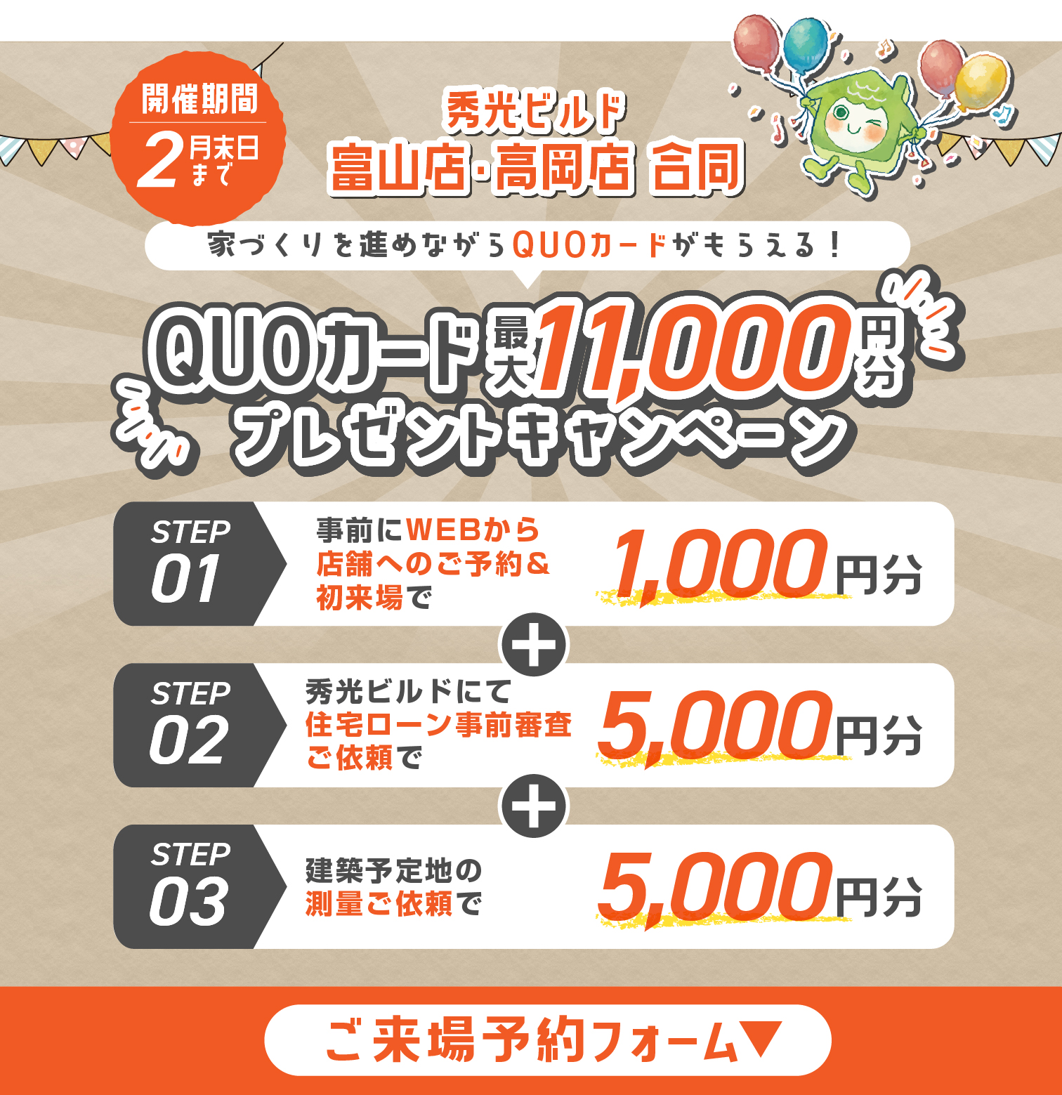 ※QUOカードは初回ご来場以降のご提案打ち合わせ時にお渡しいたします。