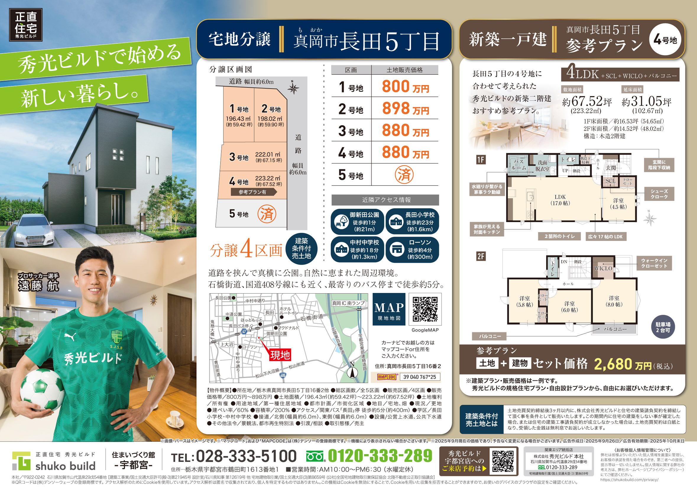 秀光ビルド宇都宮店 宅地分譲 真岡市長田5丁目 残り4区画 好評分譲中!