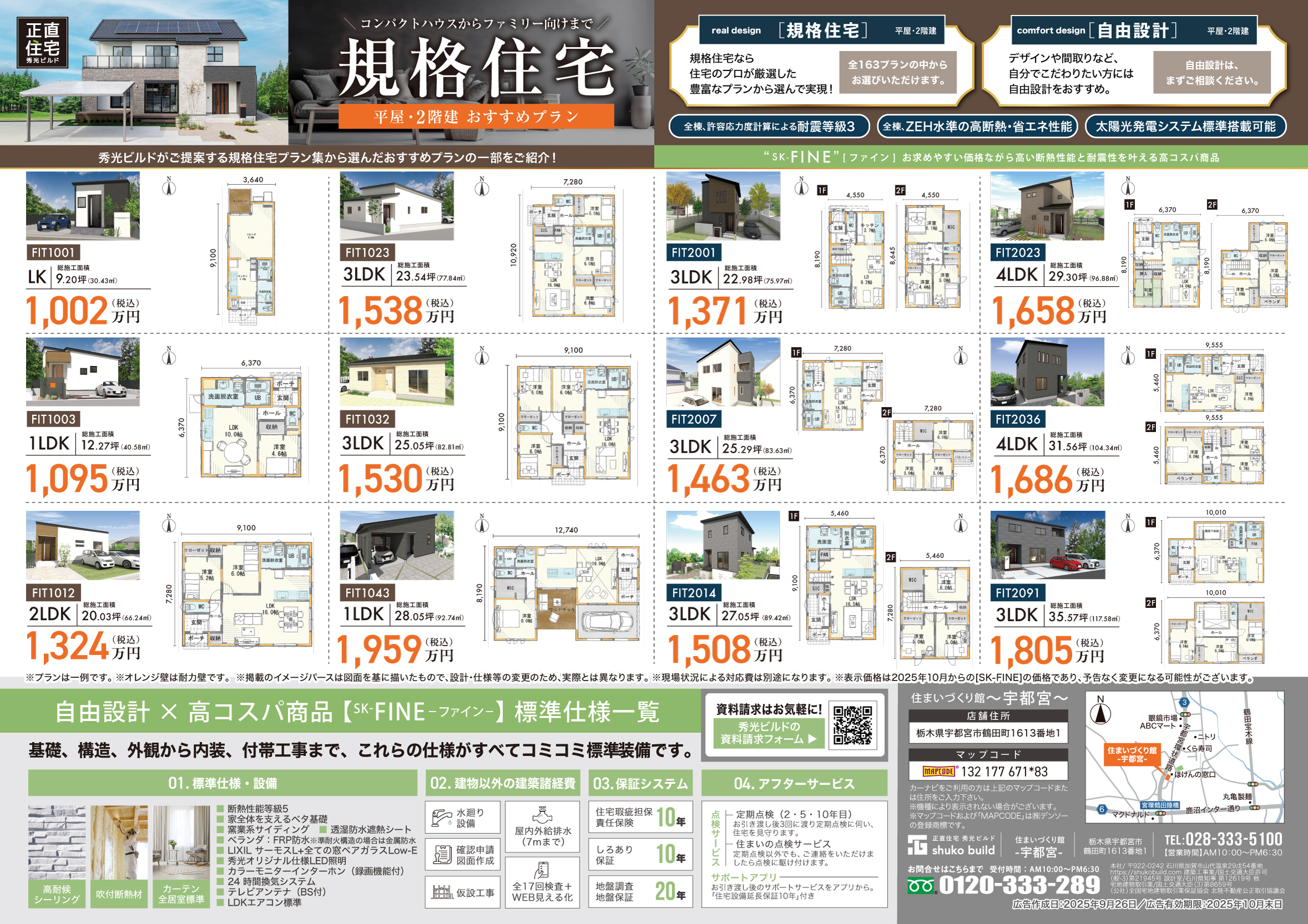 お問い合わせ先:秀光ビルド宇都宮店 028-333-5100