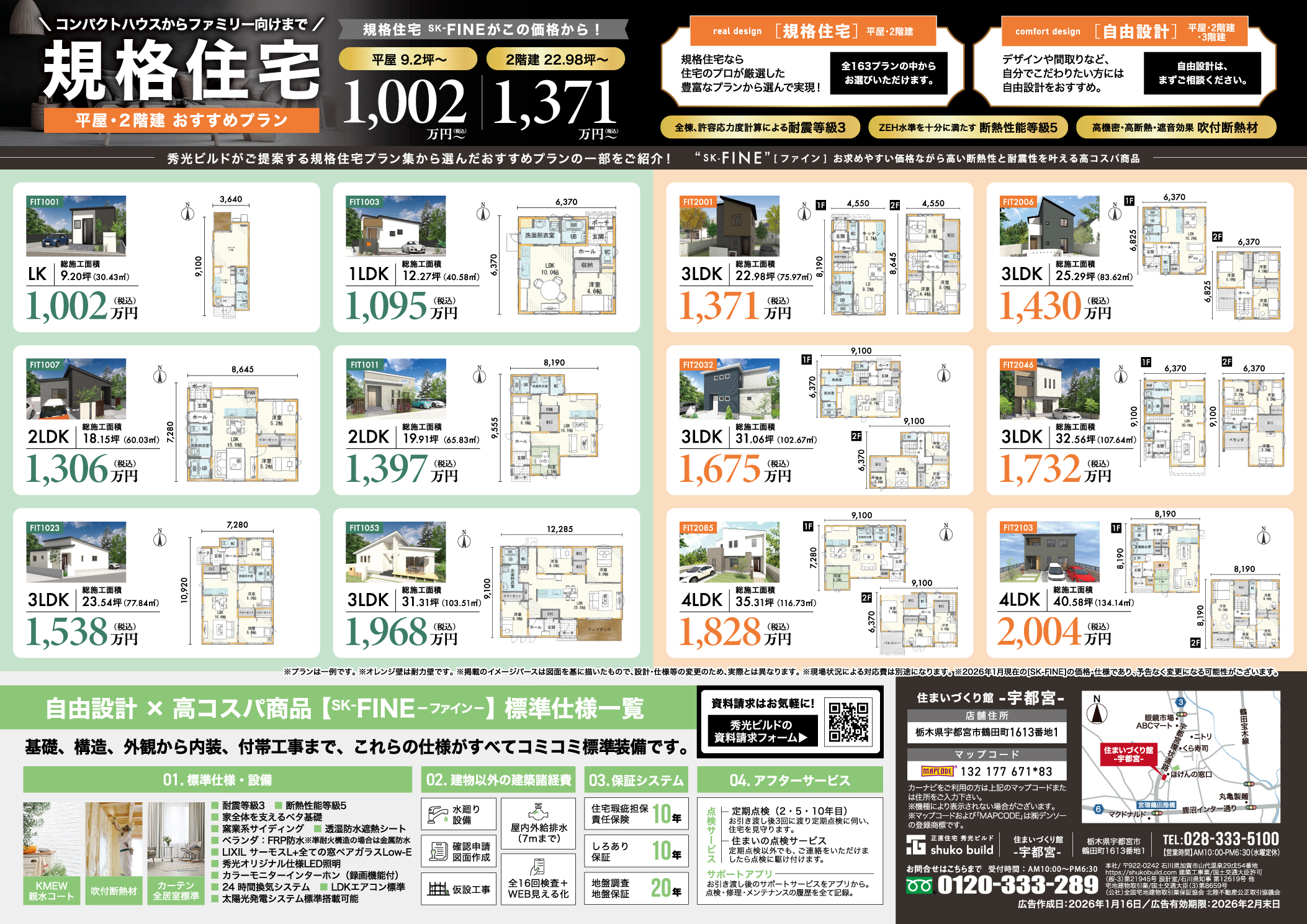 お問い合わせ先:秀光ビルド宇都宮店 028-333-5100