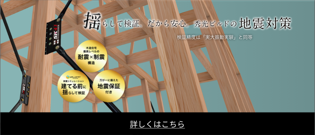 - ※2 許容応力度計算による耐震等級3、オリジナル耐力面材、オリジナル制震ダンパー「SK4.1」、ウォールスタットによる耐震シミュレーション(過去最大震度:震度7、計測震度6.78で連続3回加振)を付与する地震保証付きの住宅です。