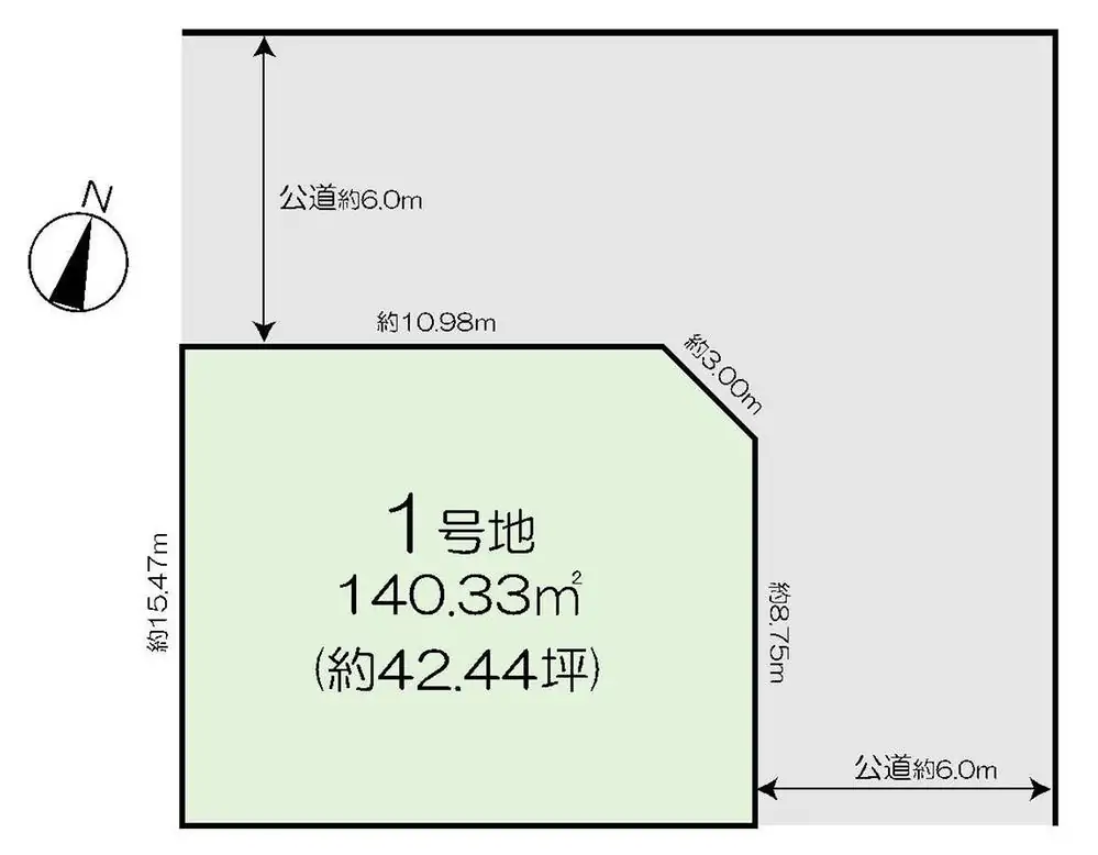 角地、前道6m以上、建物プラン例有り、更地渡し、整形地