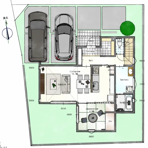 - 北6m幅(接道幅13.2m)、西3.7m幅