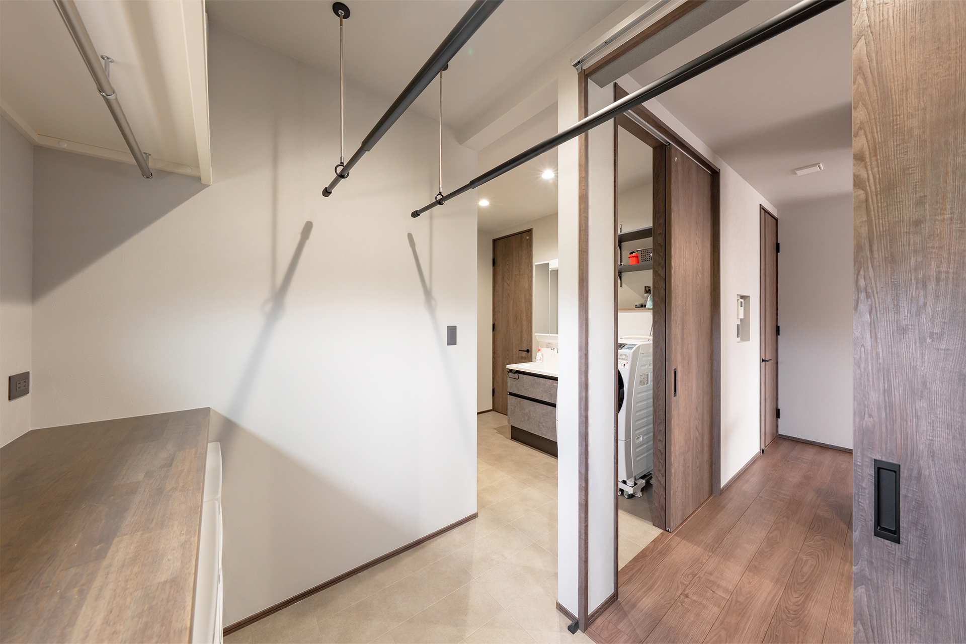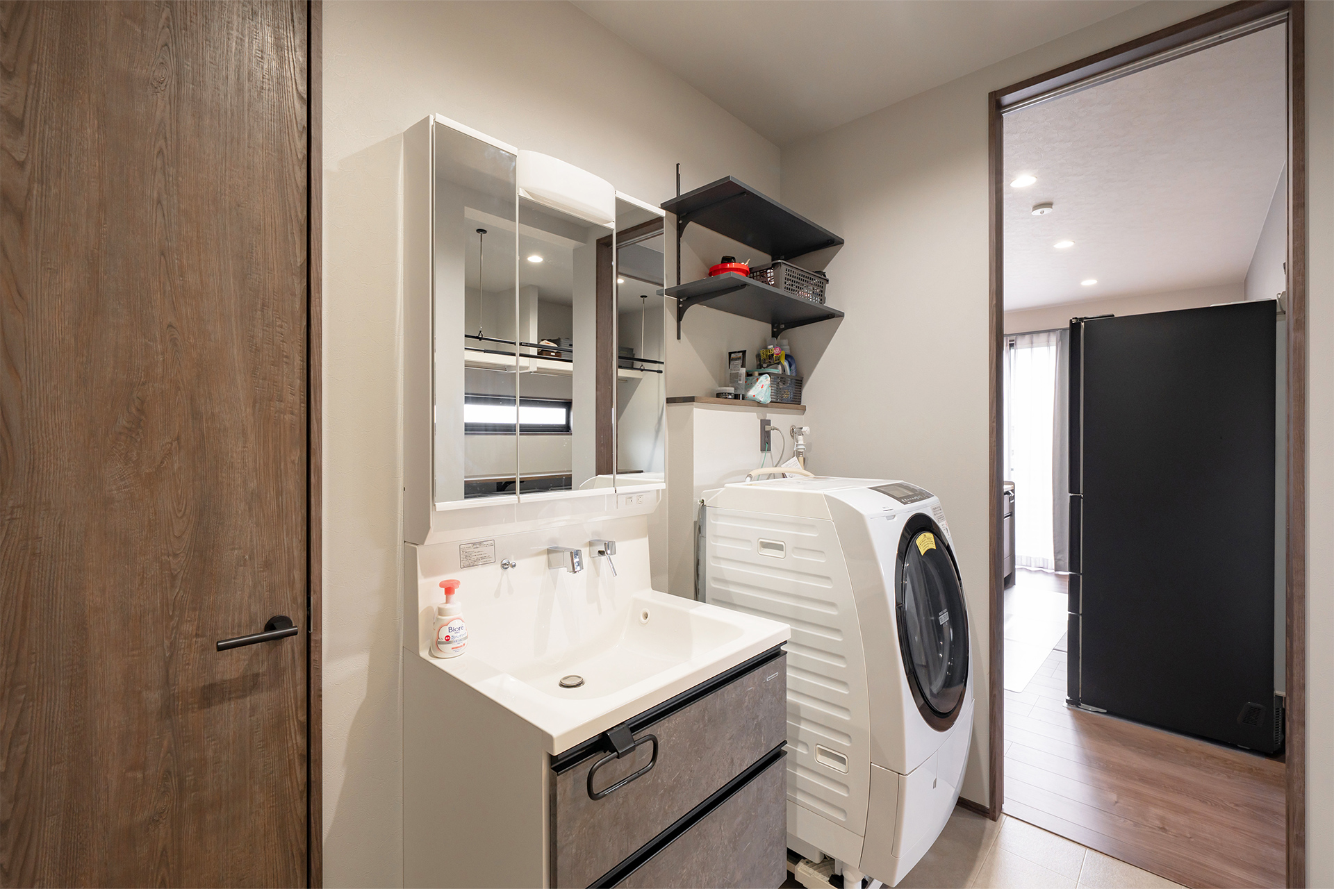 キッチン横には洗面脱衣室とランドリールームを配置。家事を効率よくこなせる動線です。
