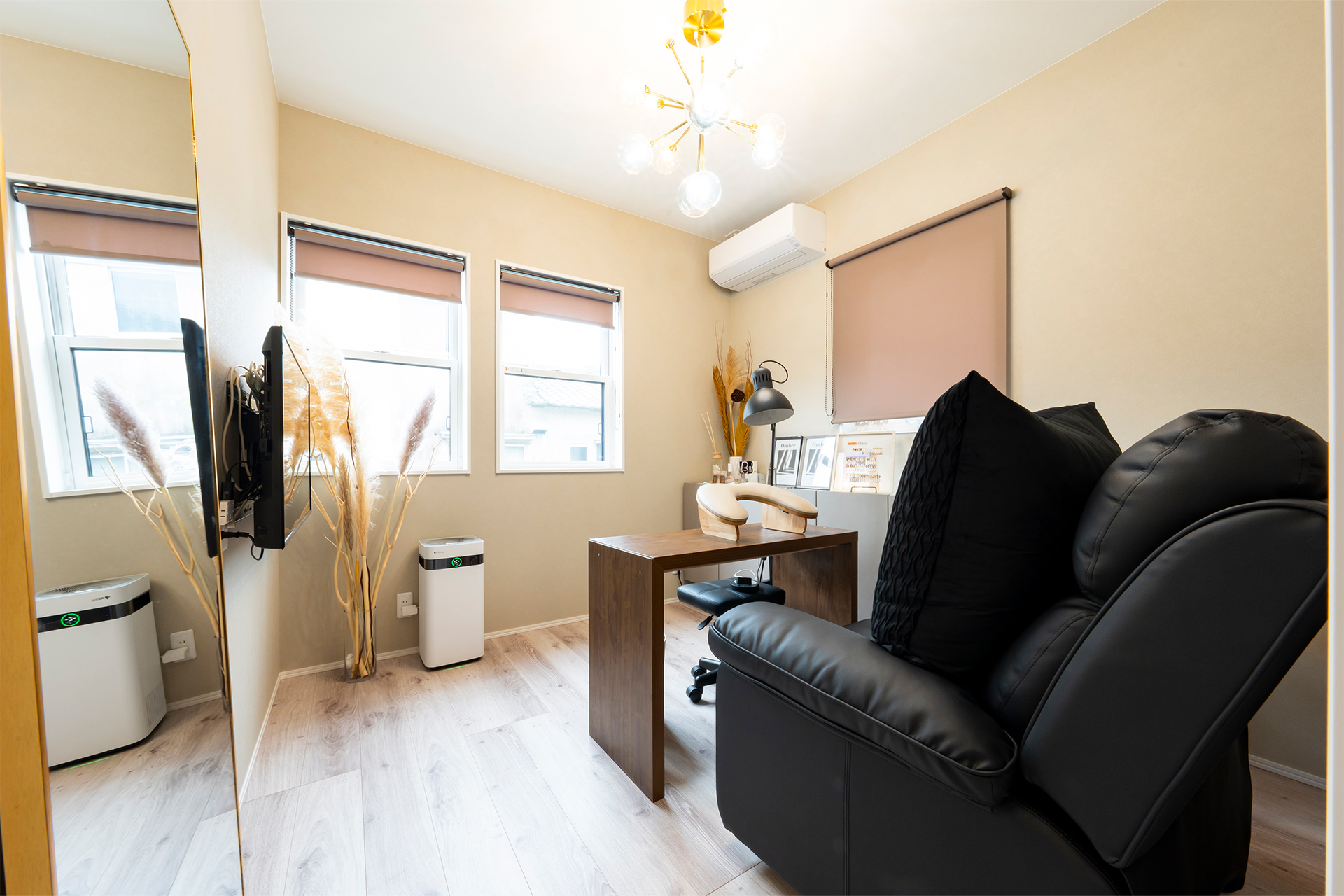 白とベージュでナチュラルな雰囲気を演出したお仕事部屋。