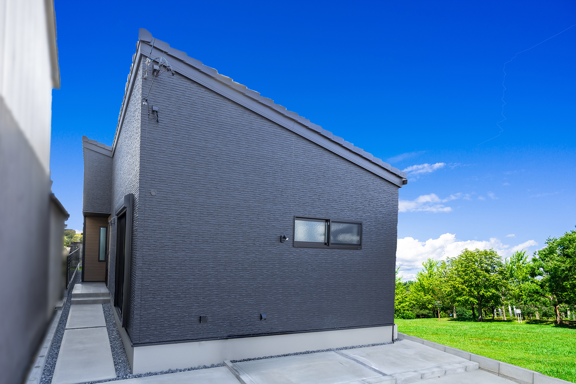 クールでモダンな外観の中に、住む人やゲストを優しく迎え入れるような柔らかさをプラスしています。