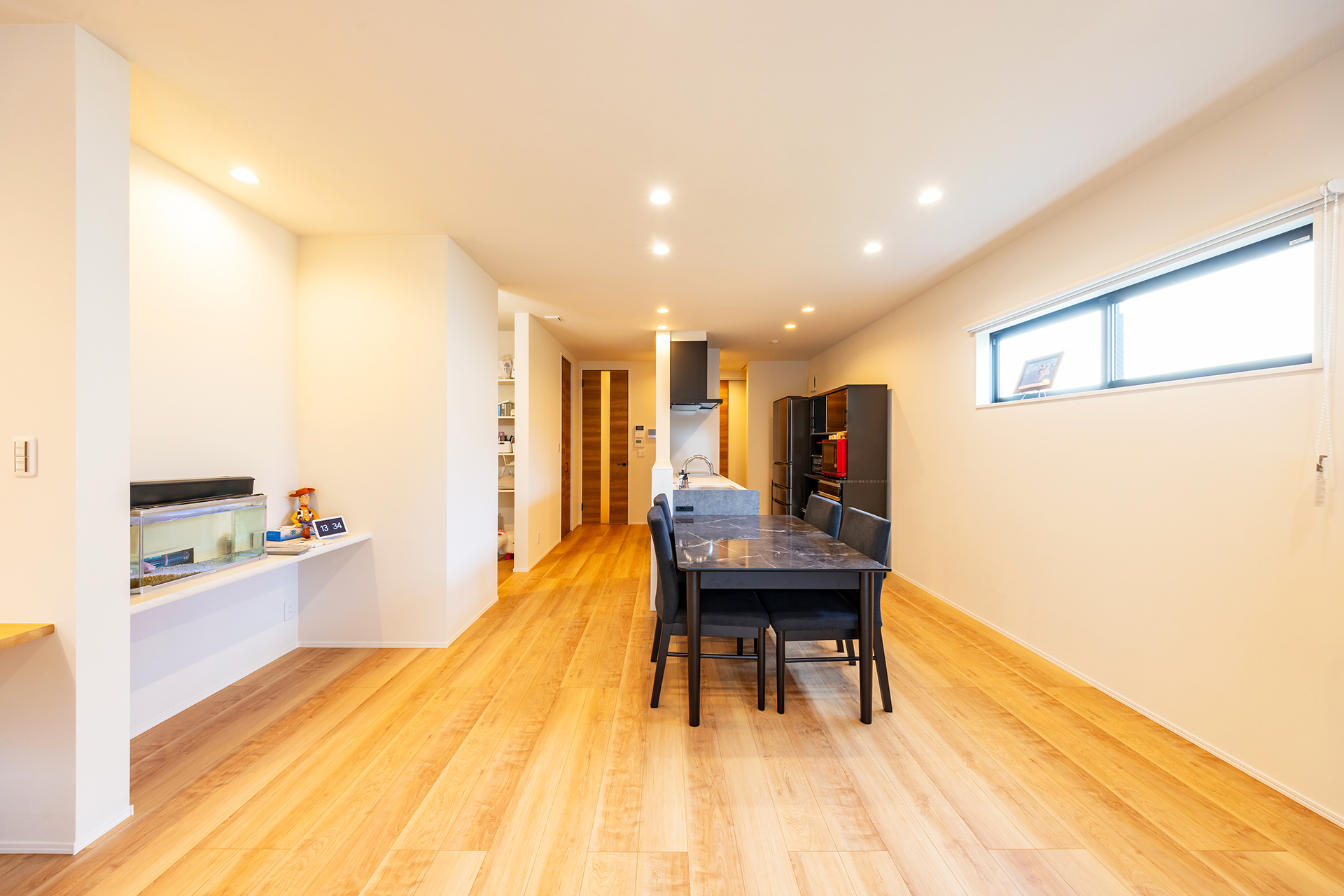 視線が抜ける広々としたLDK設計により、どこにいても家族の気配が感じられる温かな空間を実現しています。