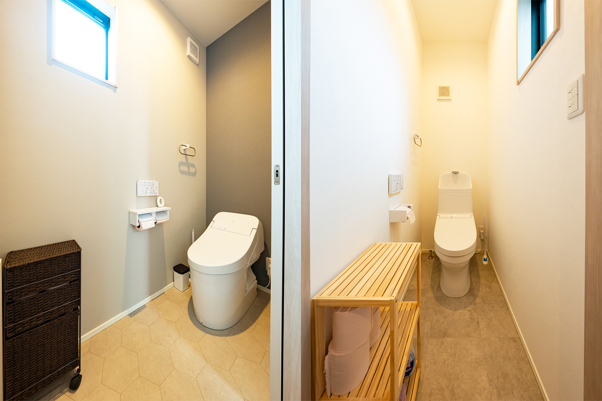 トイレは1階と2階にそれぞれ配置。小窓もあり、明るく清潔感のあるトイレです。