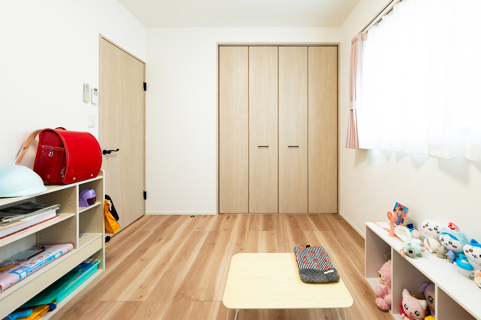 お子様のお部屋にはクローゼット完備。お洋服やその他の荷物もたっぷり収納できます。