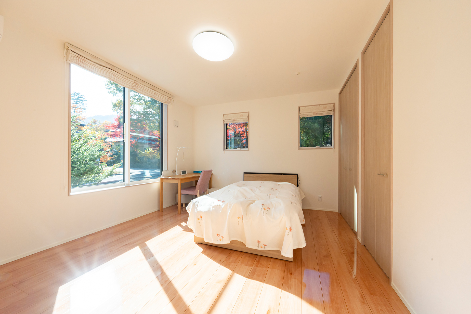 寝室にも大きな窓を。開ければ、気持ちの良い風が通り抜けます。
